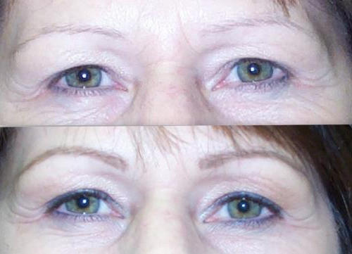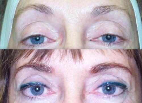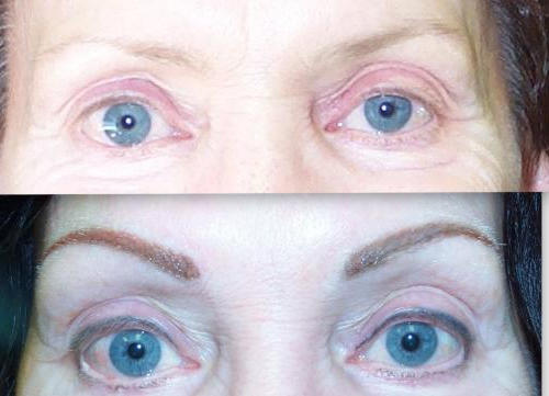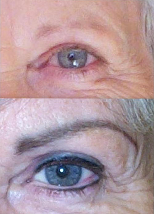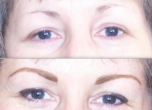 One of the most dramatic changes that can be made is with a combination brow and eye-liner